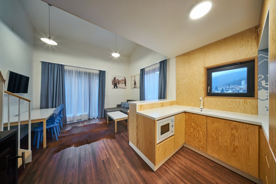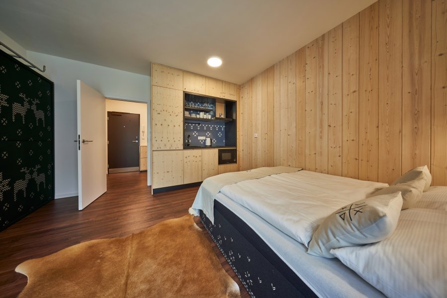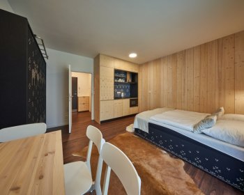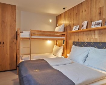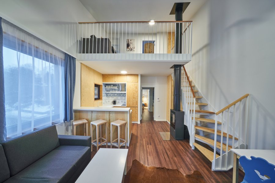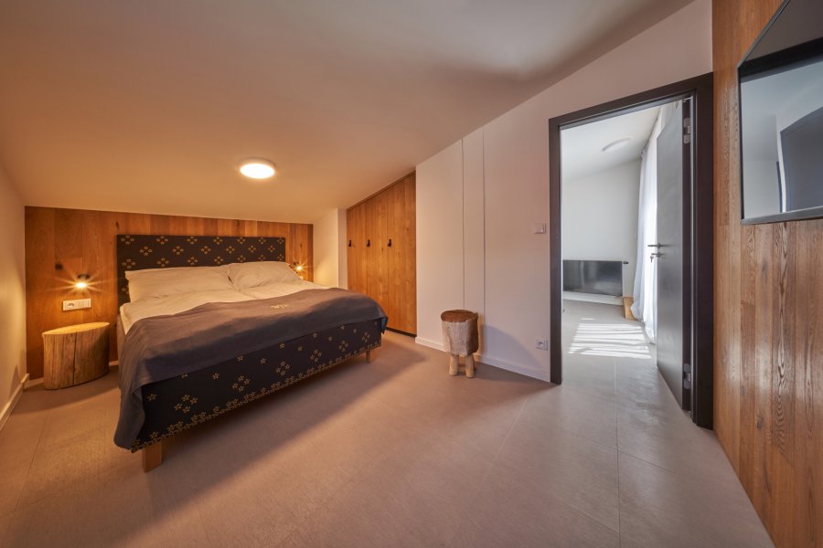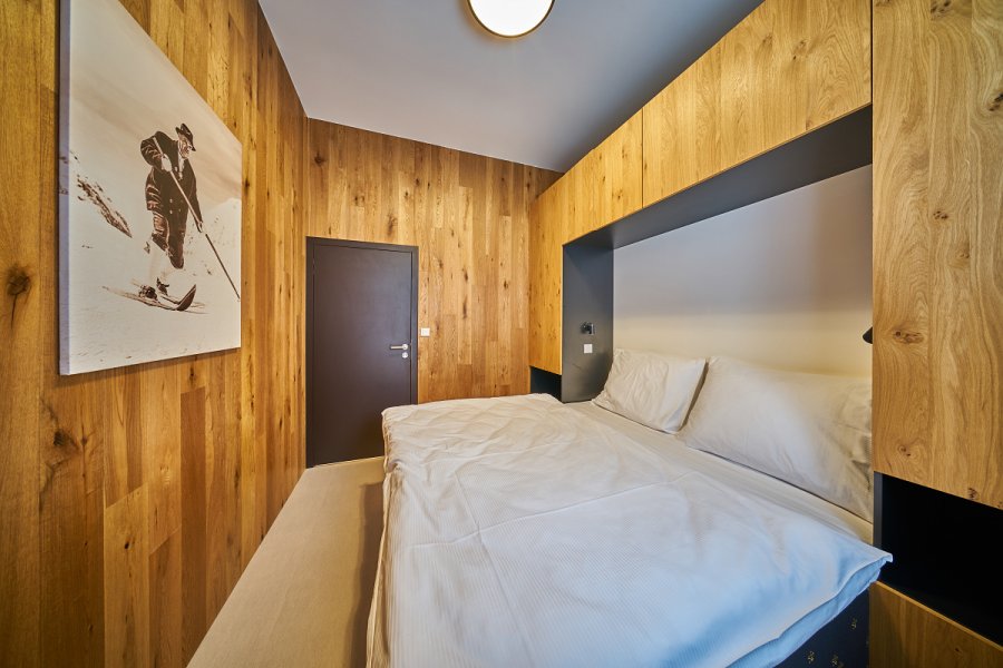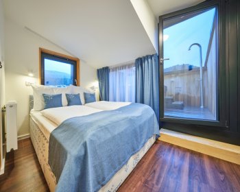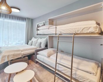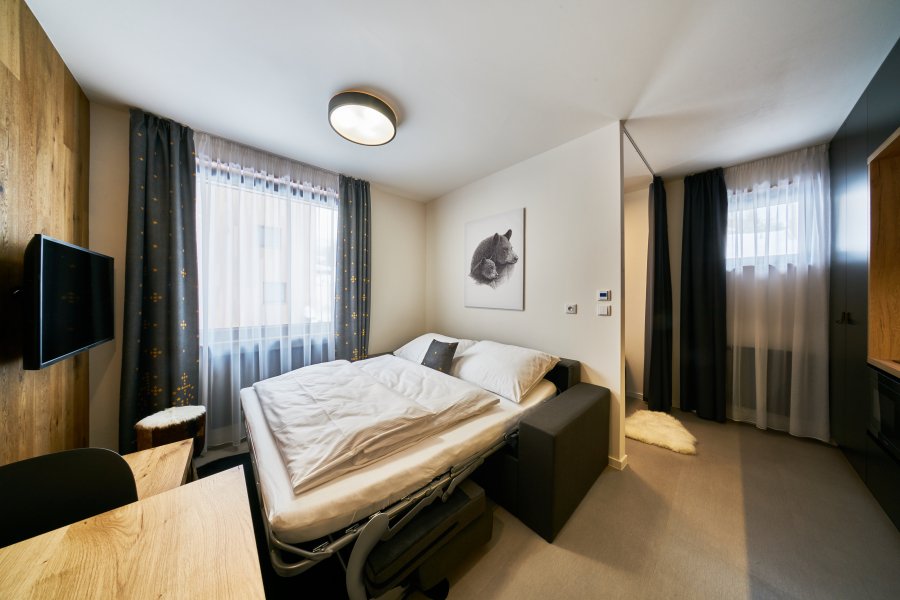 Oblíbené rodinné apartmány nabízí ubytování až pro 6 osob (manželské lůžko, pohodlná výklopná sedačka a výklopná palanda).