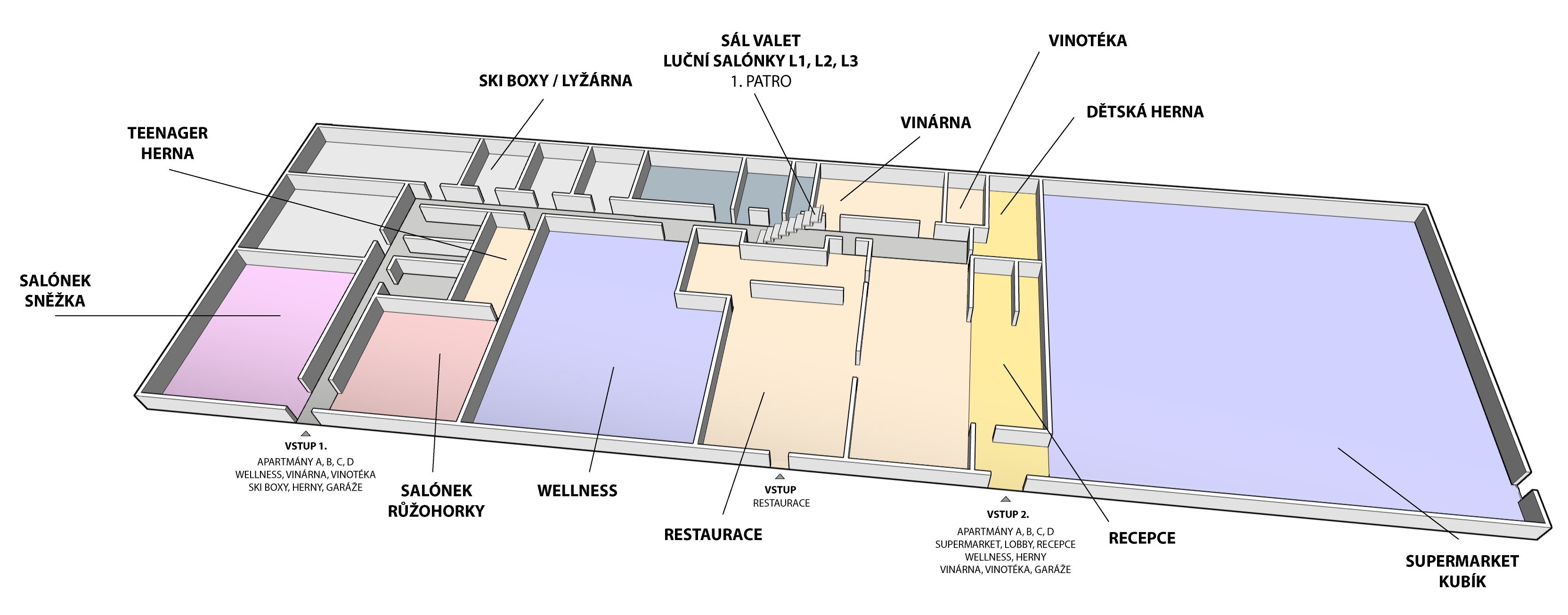 •   vyšší patra jsou dostupná výtahem