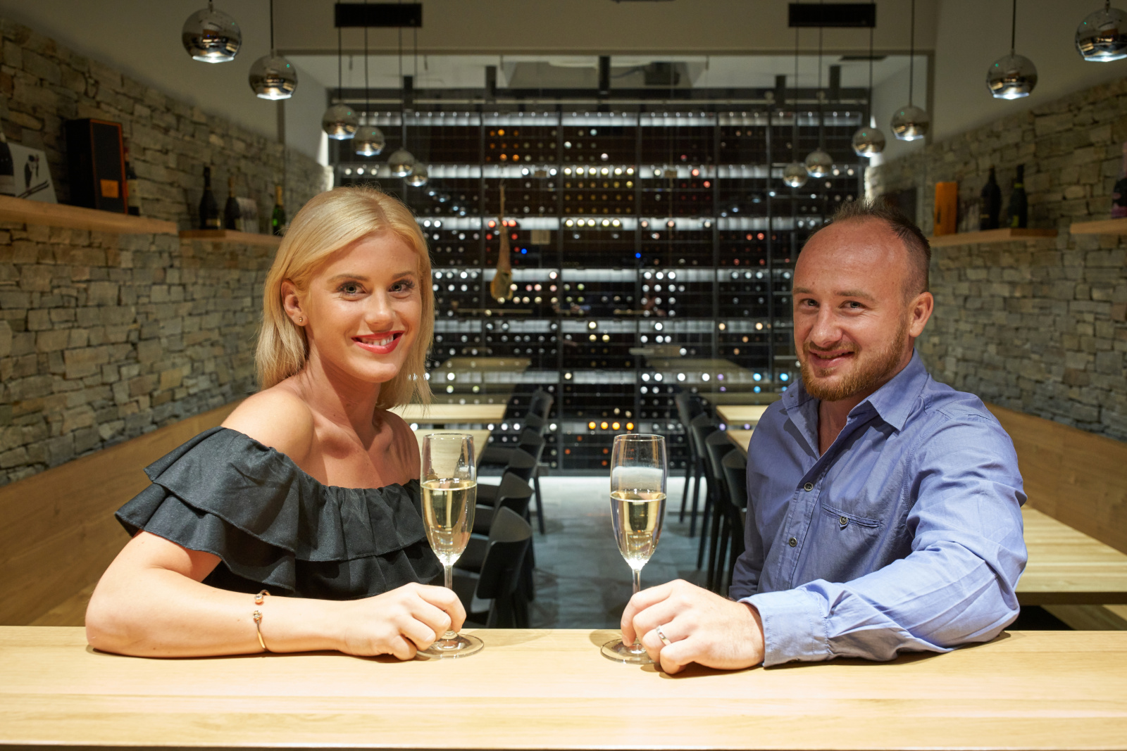 • Salonek vinárna má originální průhled do vinotéky.